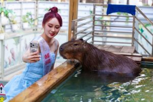 國際佳麗首度齊聚園區,美麗與萌力的跨國邂逅,國際佳麗抵達園區後,立即被軟萌水豚、活潑狐獴、治癒系羊駝、多樣珍稀鳥類與各式溫順動物所吸引。佳麗們紛紛拍照記錄,並透過個人社群平台即時分享園區體驗,形成全球擴散效應,讓高雄觀光魅力在多國同步曝光。