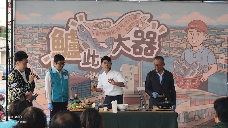 今年漁會已累計收購150噸國產鱸魚原料,以實際行動協助產銷調節,展現支持本土養殖漁業的決心。活動邀請型男主廚Jerry陳昆煌示範國產鱸魚料理「五彩銀鱸黃金海」,呈現台灣鱸魚的細緻口感與料理多樣性,並鼓勵民眾以行動支持國產水產品。 梓官區漁會長期深耕多元銷售通路,包括一般市場、電商、團購、農漁會及自有門市。