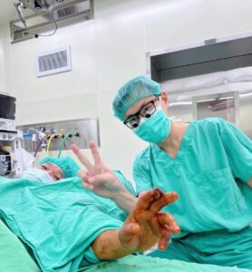 現任杏永醫院骨科部長 呂俊寬醫師 接手急診評估後,告訴梁先生一個重要決定:「你的手指還有機會救回,我可以替你做交指皮瓣重建手術。」這項手術能保留骨頭與與端指關節活動度,使手指不必因傷口覆蓋不足而被迫截短。對長期從事手作工作的梁先生而言,能否保住手指功能,等同影響未來生活、生計與尊嚴。