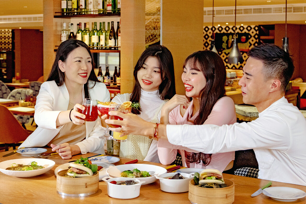 五月是感恩的季節,為體恤平日辛勞的媽咪,二樓Wok on the Park餐廳也規劃「專屬MaMa放瘋日計畫」,融合中西料理精神及進補養生的概念,由呼聲最高的『人蔘很暖』湯品領銜開場,是以慢火熬製的法式澄清雞湯為基底,加入溫補中藥材為媽媽暖胃進補,還有好評熱銷前菜『沙拉乖乖鴨』為宜蘭櫻桃鴨以香料醃製、龍眼木煙燻而成,口感軟嫩香氣十足;雙主餐有『錢包很滿』寓意的BBQ美國叻眼牛排台式刈包搭配法式洋蔥醬,及象徵『年年豐收』的乾式熟成海鱸魚佐檸檬白酒奶油醬汁,壓軸再送上『甘之如飴』六吋巧克力蛋糕,滿足少女媽媽的第二個甜點胃!