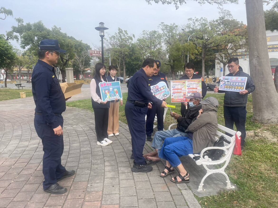 【記者林政良/高雄報導】高雄市統計至113年底,65歲以上人口已逾53萬8千人,佔全市總人口19.69%,即將邁入超高齡社會,為提升年長者自我保護意識,左營警分局長謝承甫於114年2月27日,帶同防治組組長、交通組組長及左營派出所所長,親至老人常聚會之公園關心銀髮族,同時做防詐、交通安全宣導,並發放「LED反光環」等夜間安全物品,宣導正確的交通安全觀念。
