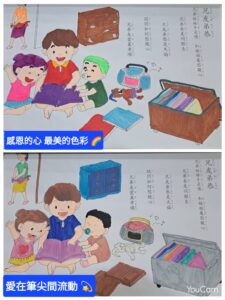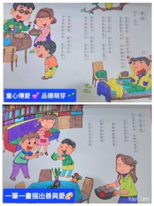 現場小朋友天真童心揮灑色彩,將《弟子規》的篇章化為生動的畫面。孩子們純真的笑容與細膩的筆觸,不僅展現對生命的尊重與感恩,也象徵著品德教育正從一筆一畫間紮根,愛與善的種子正在萌芽。