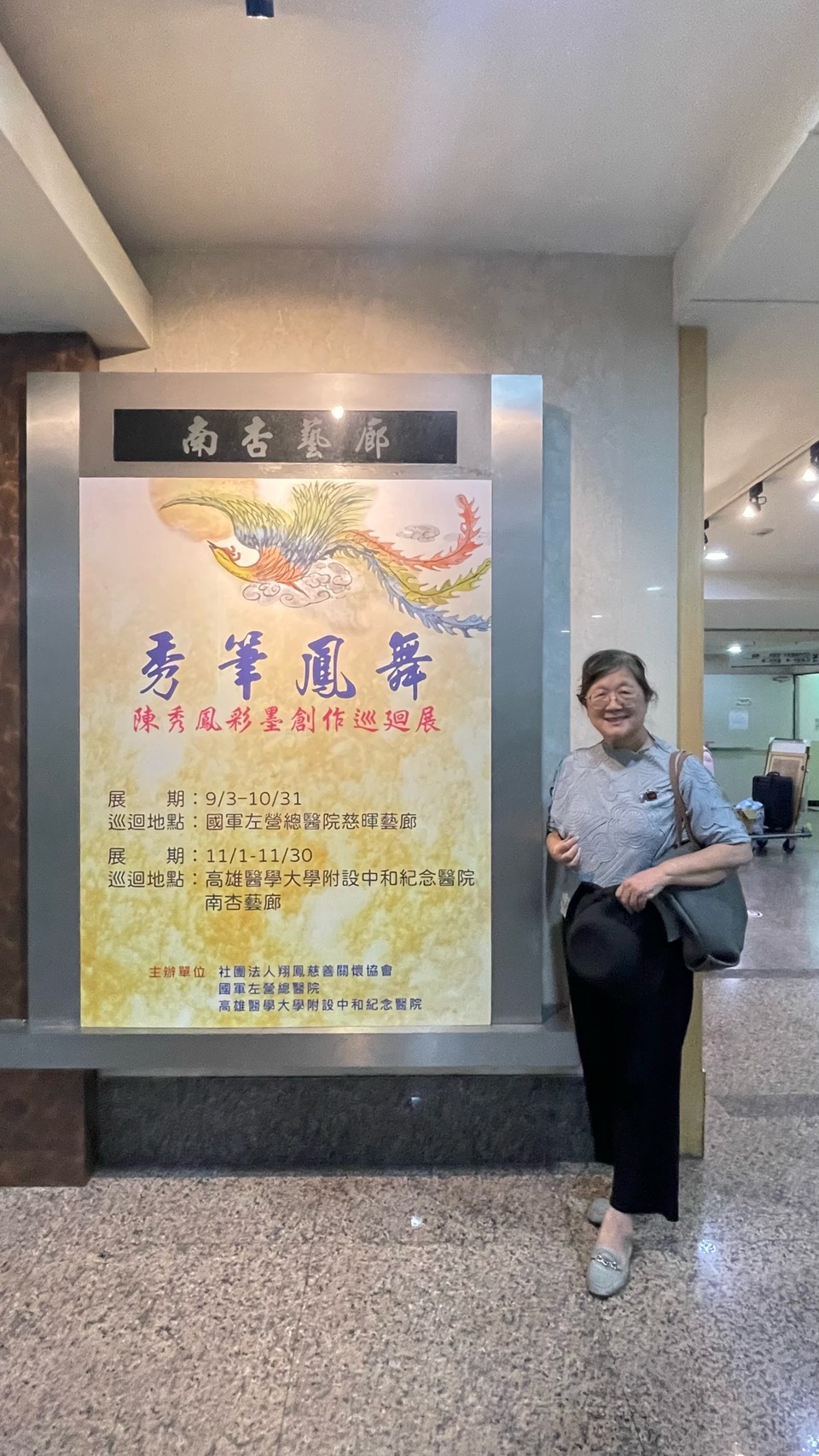【記者林政良/高雄報導】「秀筆鳳舞——陳秀鳳彩墨創作巡迴展」即日起自國軍左營總醫院(原海軍總醫院)移展至高雄醫學大學附設醫院南杏藝廊展出,展期至11月30日止。歡迎民眾蒞臨參觀,一同感受彩墨藝術的柔美與生命力。