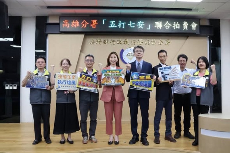 【記者林政良 黃其昌/高雄報導】法務部行政執行署高雄分署在雙11(11/11)舉辦「五打七安聯合拍賣會曁囑託變價檔案展」,由高雄地檢署檢察長黃元冠與高雄分署分署長楊碧瑛共同主持開幕儀式,上午11點準時開賣的拍賣會,拍賣官黃昭翰檢察官帶動氣氛,成功刺激買氣,應買人此起彼落喊標,競標激烈,本次拍賣成果亮眼,拍出包括賓士AMG敞篷名車與多筆不動產,總金額高達3,336萬6,750元創下新高令人注目。